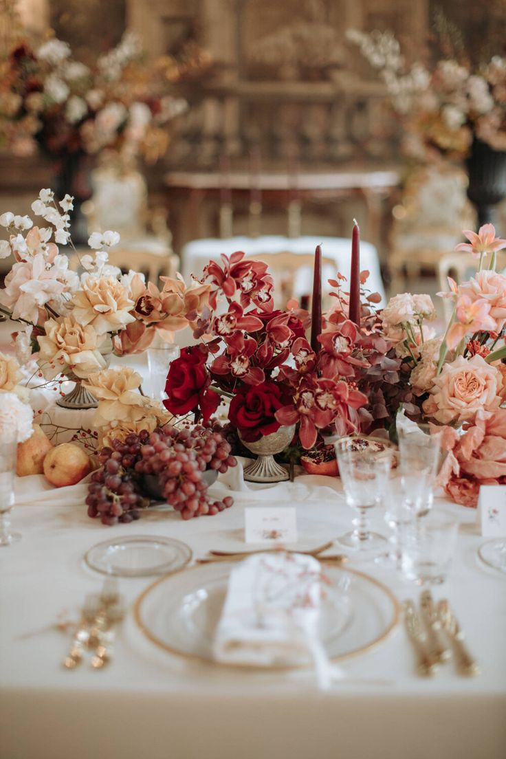 Decoración de banquete: centros de mesa, mesas imperiales, colgantes florales y rincones especiales.