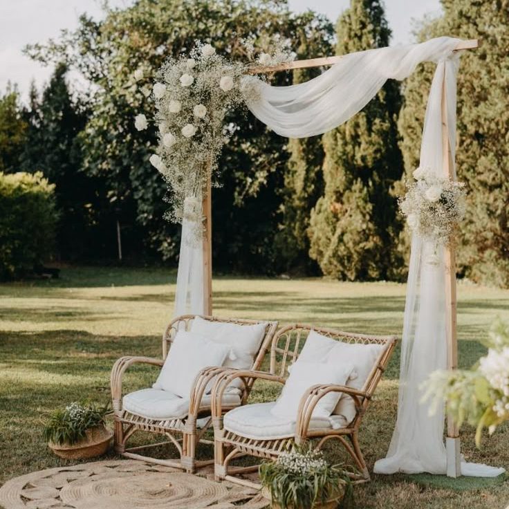 Decoración de ceremonia: altares, arcos, bancos y rincones temáticos.